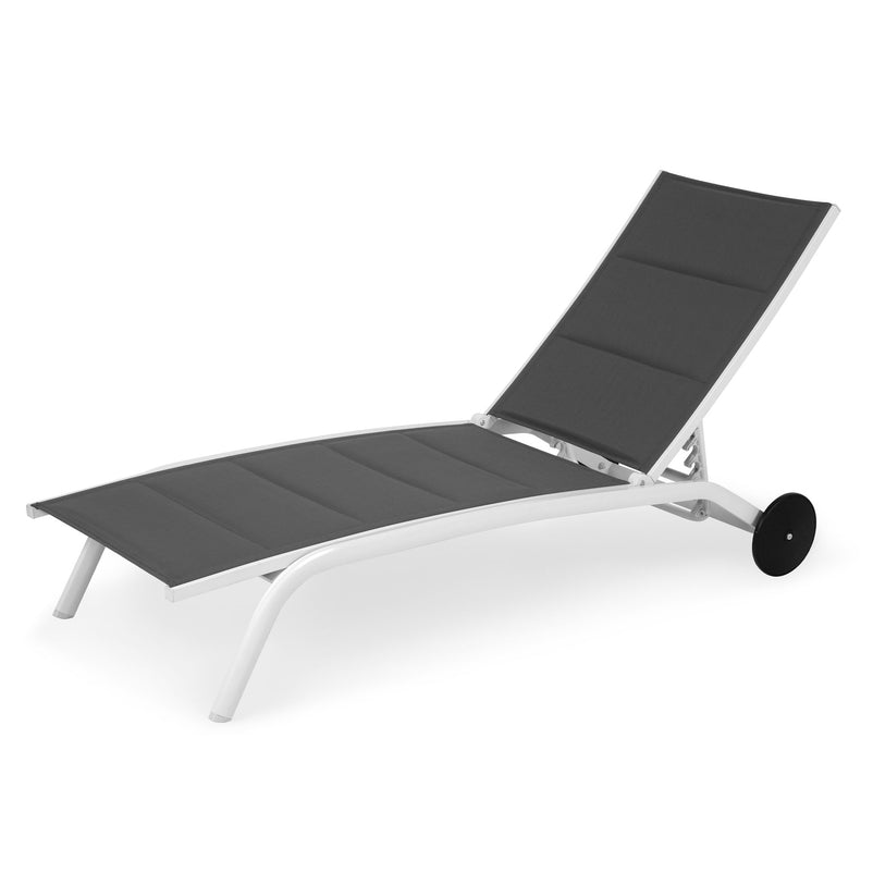 Șezlong Yacht Club. Șezlongul din gama Yacht Club vă oferă prilejul de a vă odihni și relaxa în zilele calde de vară. Fie că vreți să îl poziționați lângă piscină și să simțiți razele soarelui, fie că îl veți pune pe terasă sau în grădină și vă veți bucura de o băutură răcoritoare, șezlongul se poate muta cu ușurință grație roților. Cu o structură rezistentă din aluminiu vopsită în câmp electrostatic, șezutul și spătarul confecționate din textilină dublă rezistentă Uv și posibilitate de schimbare a poziției spătarului, șezlongul este zona voastră de odihnă plasată în mijlocul naturii. De asemenea, acesta este prevăzut cu un strat de vată siliconată în mijloc pentru un plus de confort.