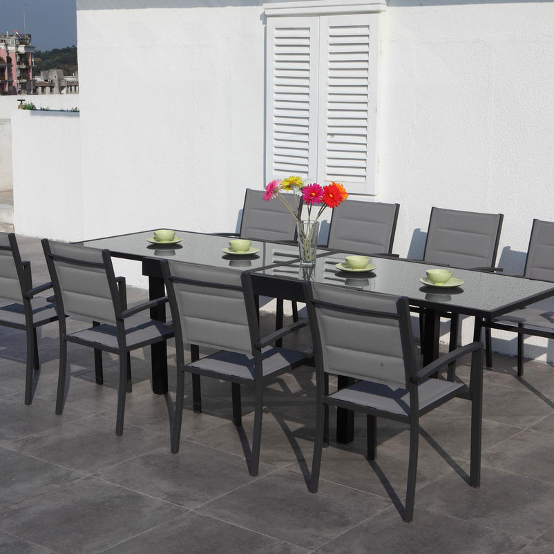 LUCCA Set mobilier terasă/grădină, 8 scaune și masă extensibilă