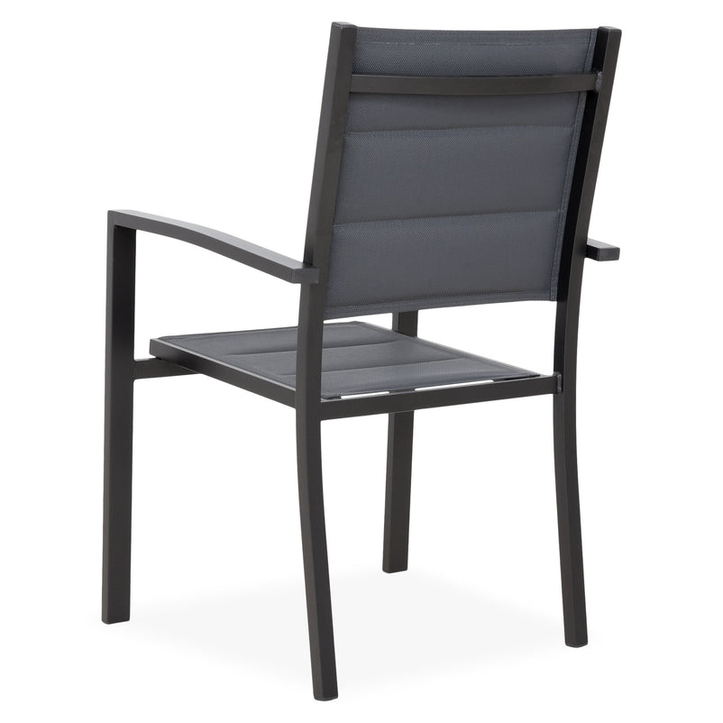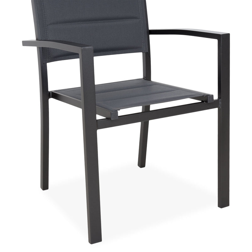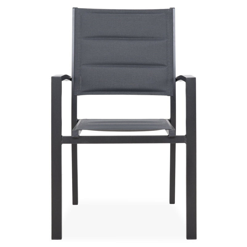 Scaun exterior Lucca. Mesele servite în compania familiei sau a invitaților vor căpăta mai multă savoare în aer liber. Scaunul din gama Lucca vă oferă și pe terasă sau în grădină același confort de care vă bucurați în cadrul zonei de dining din interior. Spătarul și șezutul sunt îmbrăcate în textilină tratată UV. În plus, scaunele din gama Lucca sunt suprapozabile, astfel că depozitarea acestora nu va reprezenta niciodată o problemă.