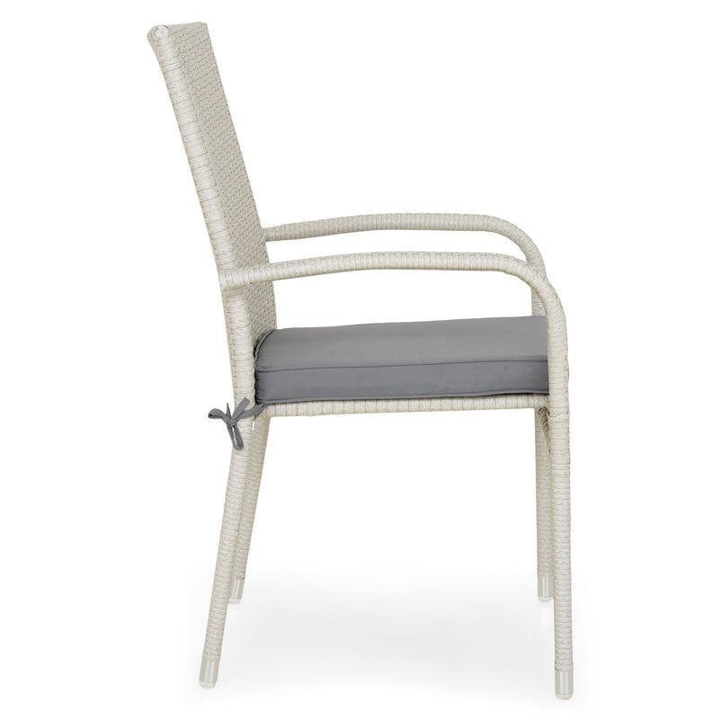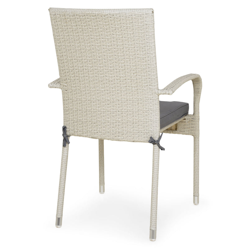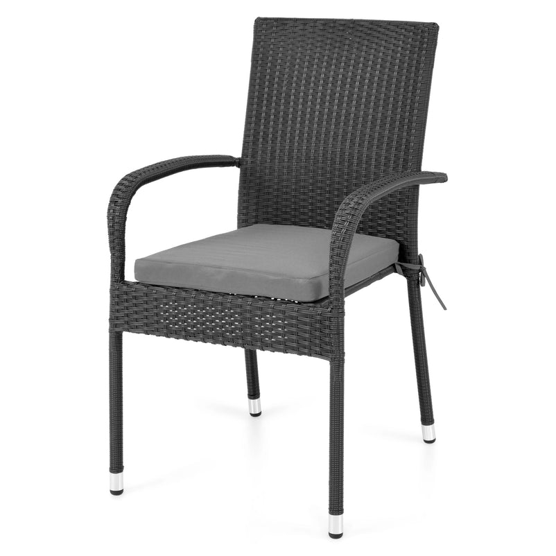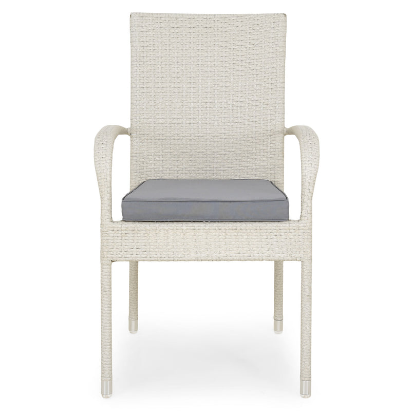 Scaun suprapozabil exterior Presley. Scaunul din gama Presley este o alegere inspirată pentru a aduce un plus de confort în amenajarea din grădina sau de pe terasa voastră. Scaunul este confecționat dintr-un material rezistent la razele UV, astfel se își va păstra culoarea și textura. De asemenea, este impermeabil, nefiind afectat de ploaie.
