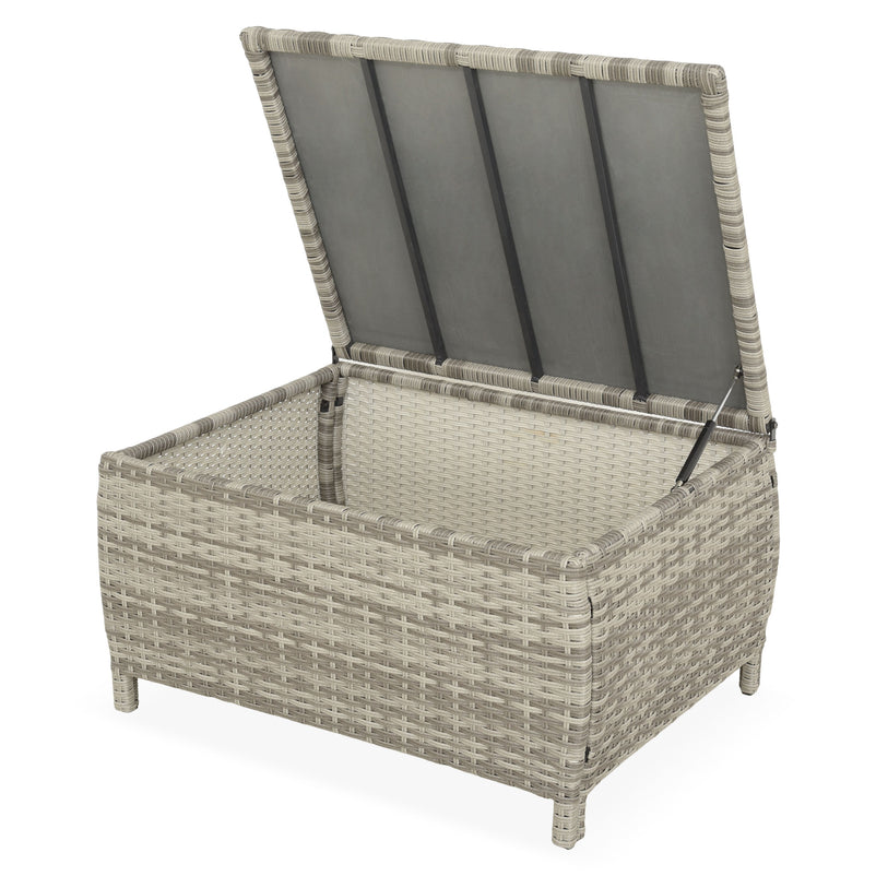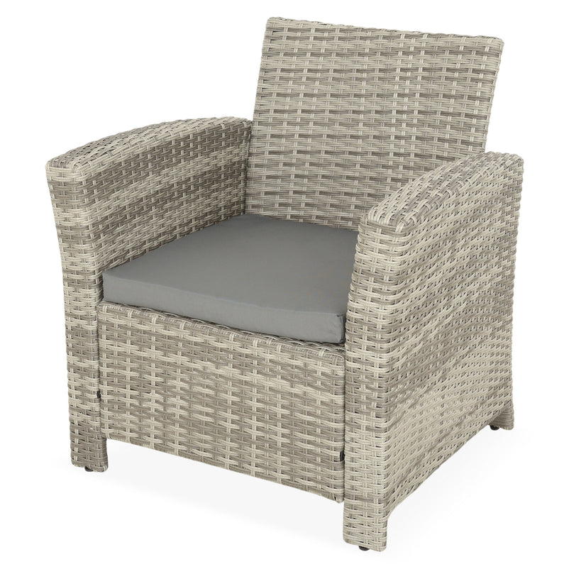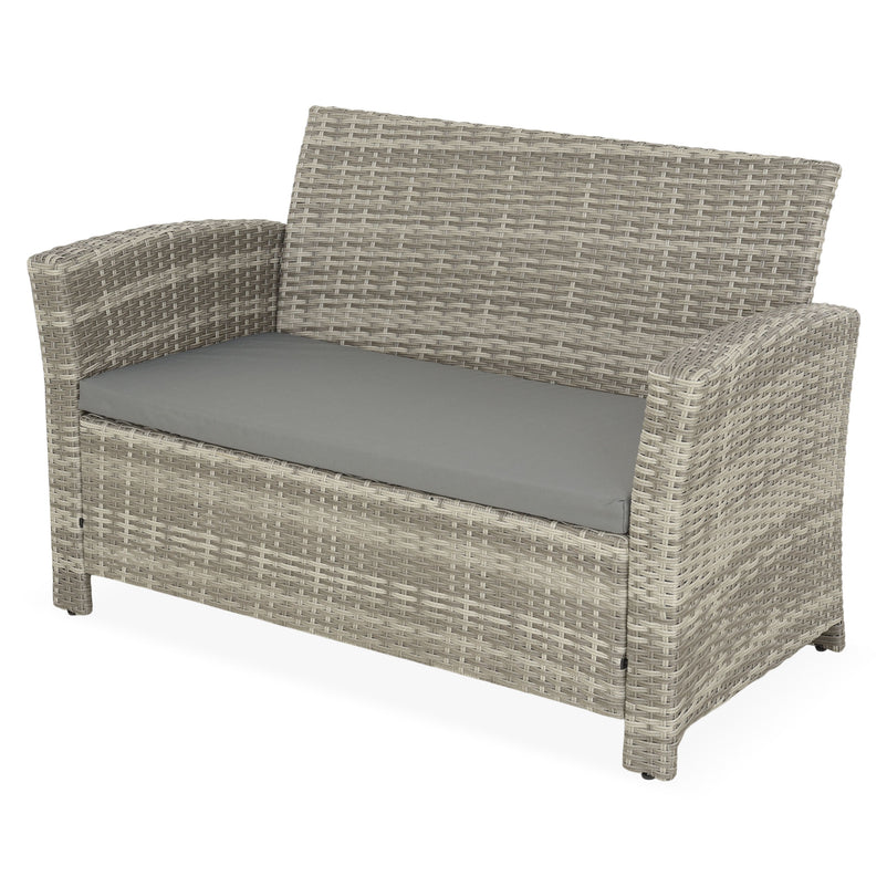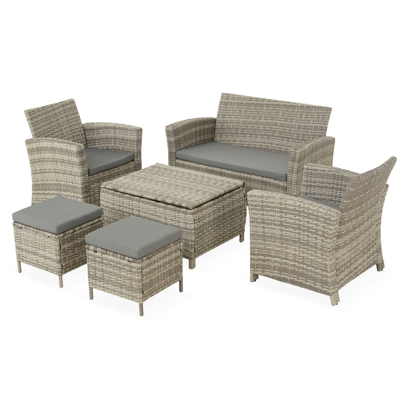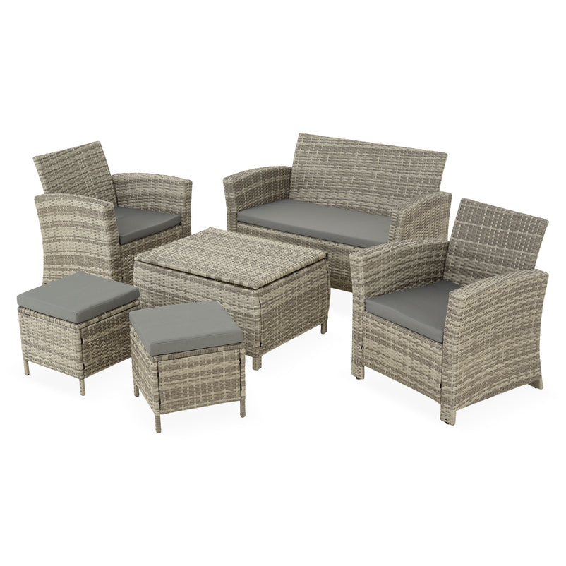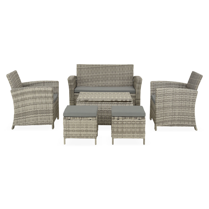 MEGARA Set mobilier terasă/grădină, 2 fotolii, canapea 2 locuri, 2 taburete și măsuță