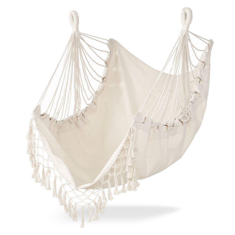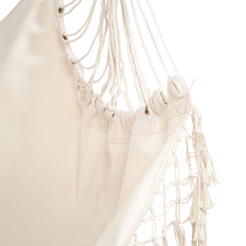 Leagăn Stripes. Relaxați-vă în natură, într-un leagăn în care boemitatea și confortul se împletesc într-un mod ideal. Leagănul oferă mai mult decât simpla posibiltate de balansare, ci reprezintă o oază de relaxare, unde să vă simțiți mereu comod și unde să vă bucurați de momente de liniște în aer liber. Leagănul este rezistent și durabil și cu elemente decorative în formă de franjuri pentru un plus estetic.
