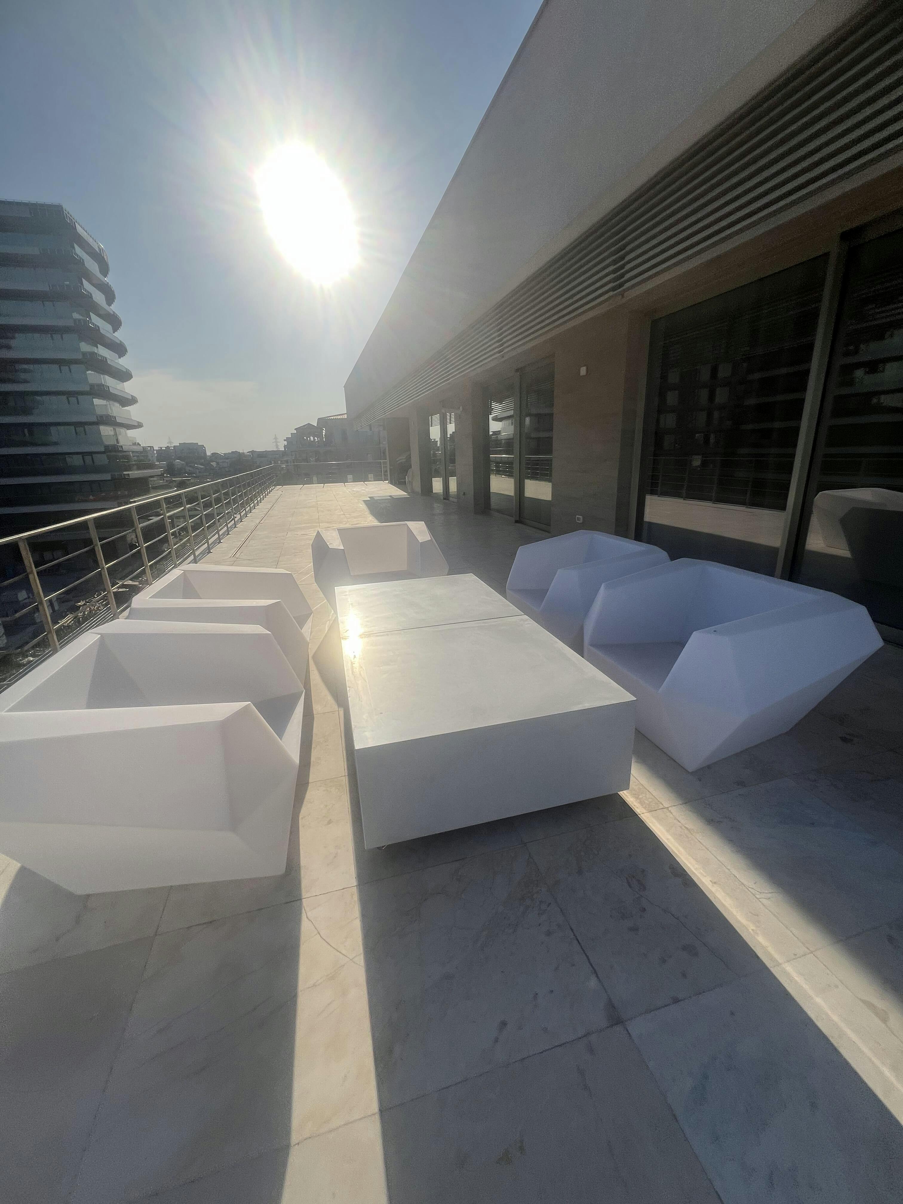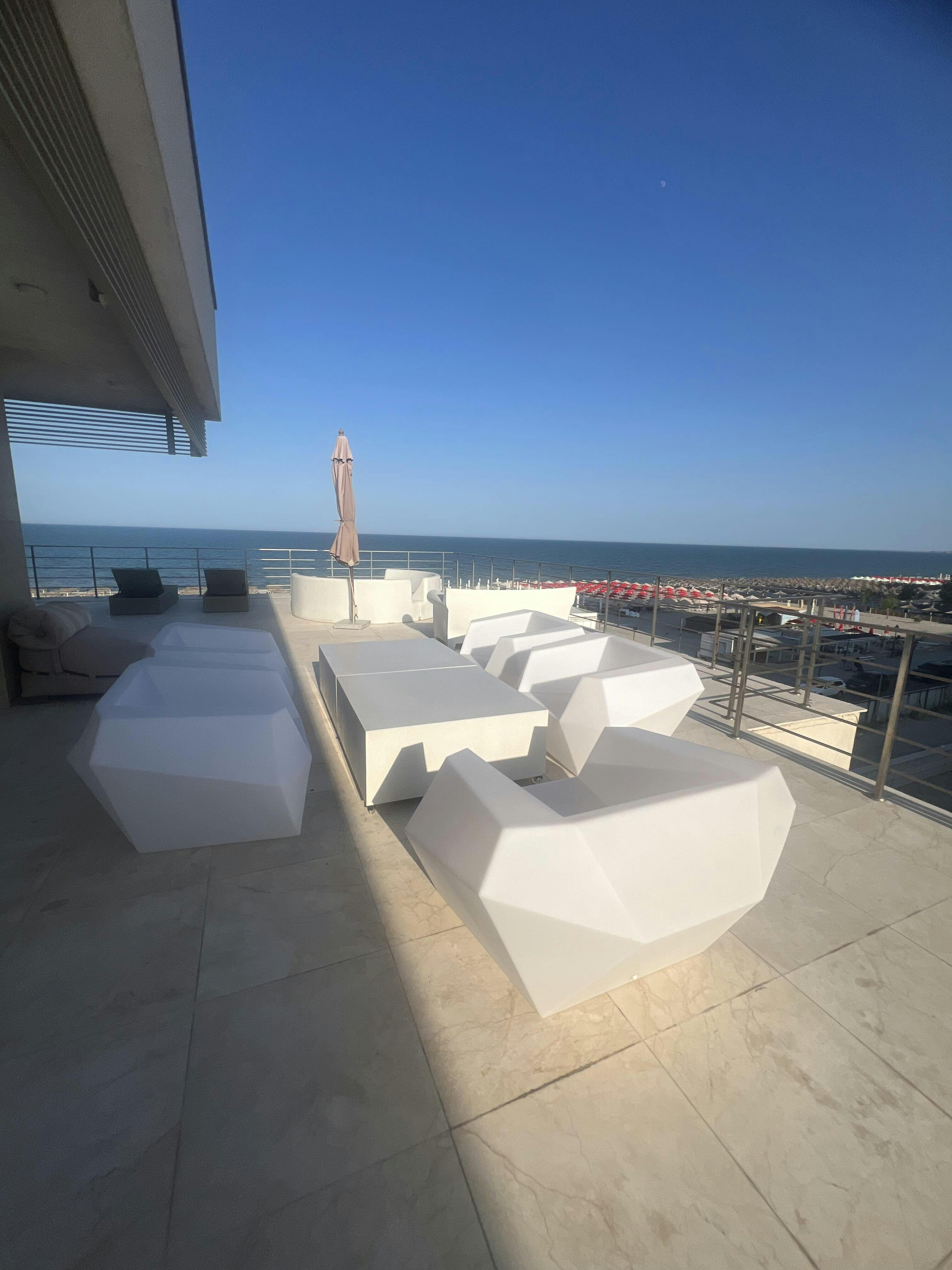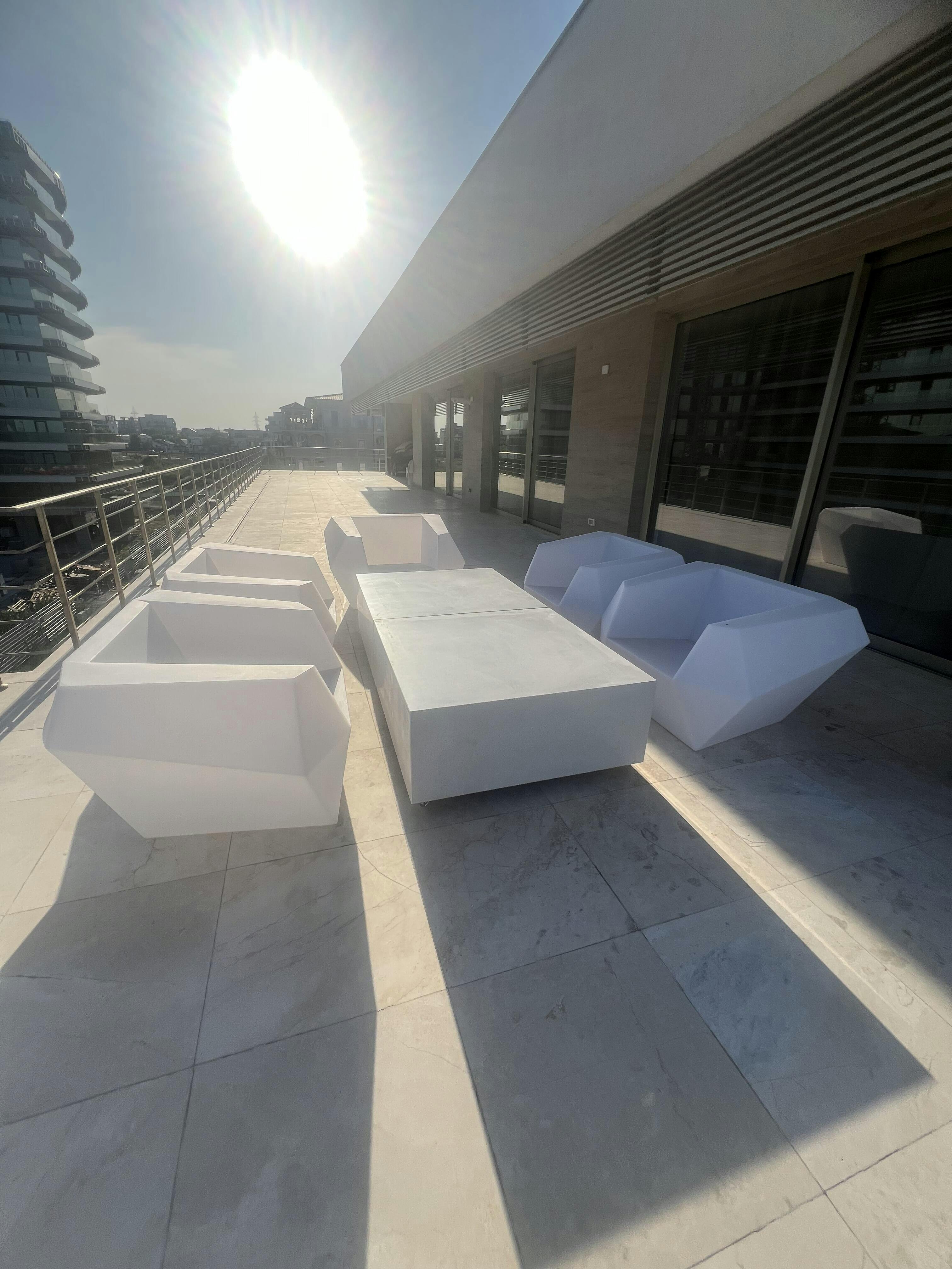 Fotoliu exterior Nola. Fotoliu din gama Nola este potrivit pentru a fi amenajat în grădina sau pe terasa voastră de acasă, acesta relevând eleganță și nonconformism. Acesta este realizat din polipropilenă în 16 culori, asigurându-vă confortul dorit. De asemenea, include încărcător cu adaptor și telecomandă.