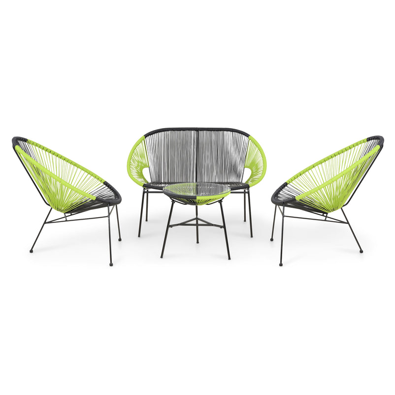 Set mobilier terasă/grădină 2 fotolii, canapea și măsuță Corfu. Bucurați-vă de soare în compania unor piese moderne și confortabile. Gama Corfu este excelentă pentru spațiile mici, balcoane sau cafenele și vă oferă locul perfect pentru petrecerea timpului liber. Cu elemente realizate din fibre sintetice pe o structură din oțel, setul Corfu se remarcă prin designul modern, definit de unicitate. Aspectul deosebit îi este dublat de funcționalitate, reprezentând o alegere practică și de bun gust pentru spațiul vostru.