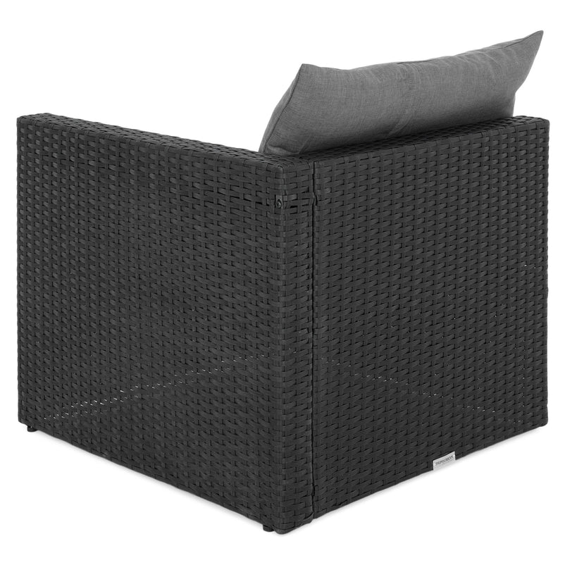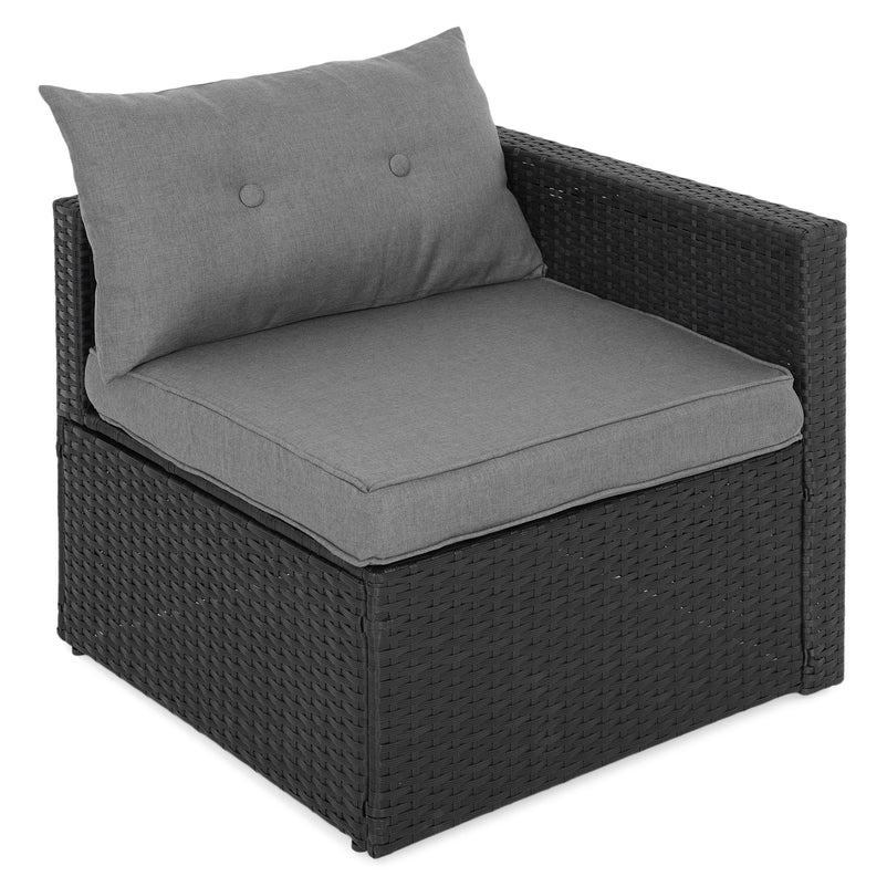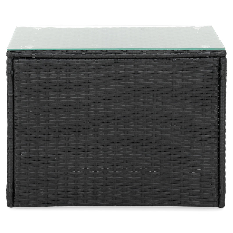 Set mobilier terasă/grădină, fotoliu braț stânga, fotoliu braț dreapta, 2 taburete și măsuță. Spațiul vostru de relaxare în aer liber de pe terasa sau din grădina casei primește o infuzie de prospețime și un aspect modern odată cu instalarea setului pentru terasă și grădină din gama Marti. Cele două fotolii și cele două taburete taburetele, cât și măsuța, sunt realizate din structură solidă din oțel, vopsită în câmp electrostatic, împletită cu fibre sintetice cu protecție împotriva razelor UV ce imită ratanul. Setul include pernele îmbrăcate în țesătură din poliester cu protecție împotriva umezelii. Husele sunt prevăzute cu fermoar pentru o îndepărtare ușoară pentru curățat. Topul măsuței este realizat din sticlă securizată.