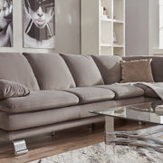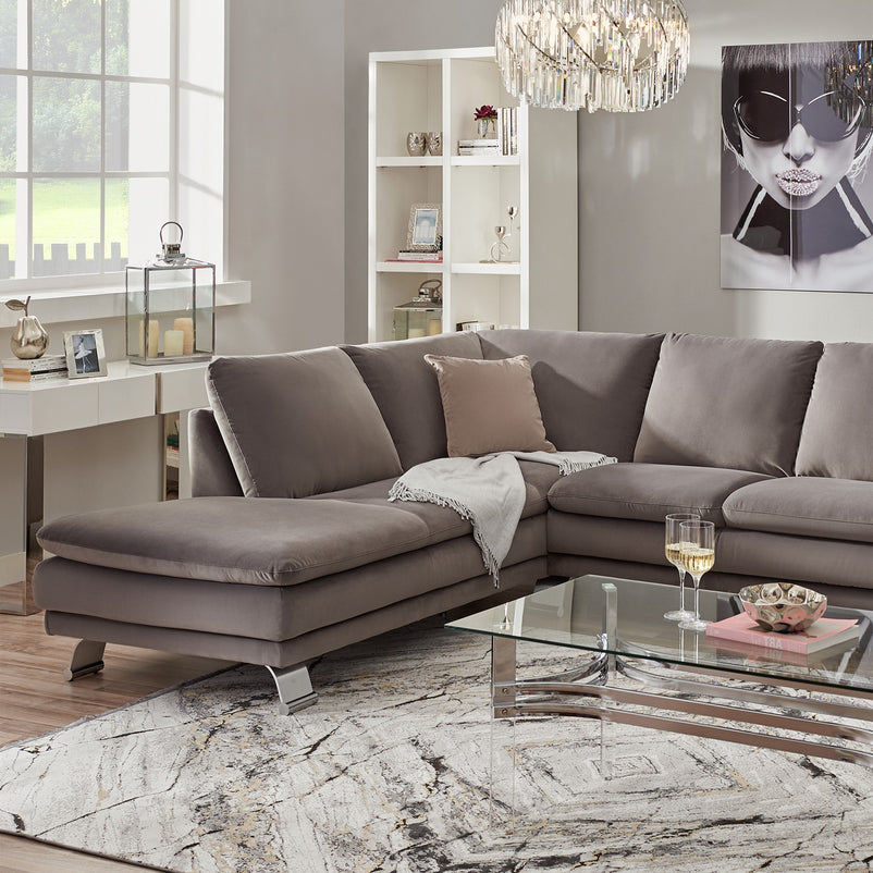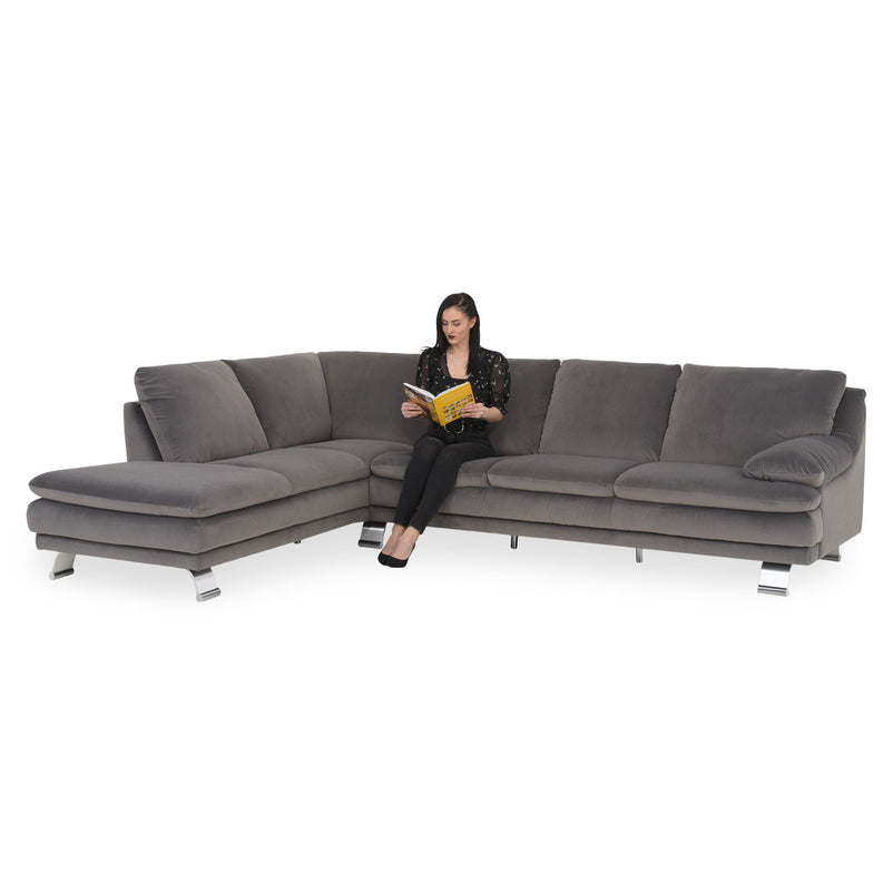 Colțar șezlong stânga/dreapta, stofă Adden. O zi bună începe de pe un colțar cu șezlong din gama Adden, acesta fiind o piesă de mobilier moale și deosebit de confortabilă. Confecționat în totalitate din stofă și finisat în gri, colțarul va fi o prezență minunată în interiorul livingului, completând cu succes spațiul liber de acasă. Petreceți momente de relaxare pe acest colțar elegant și vă veți simți bine acasă..