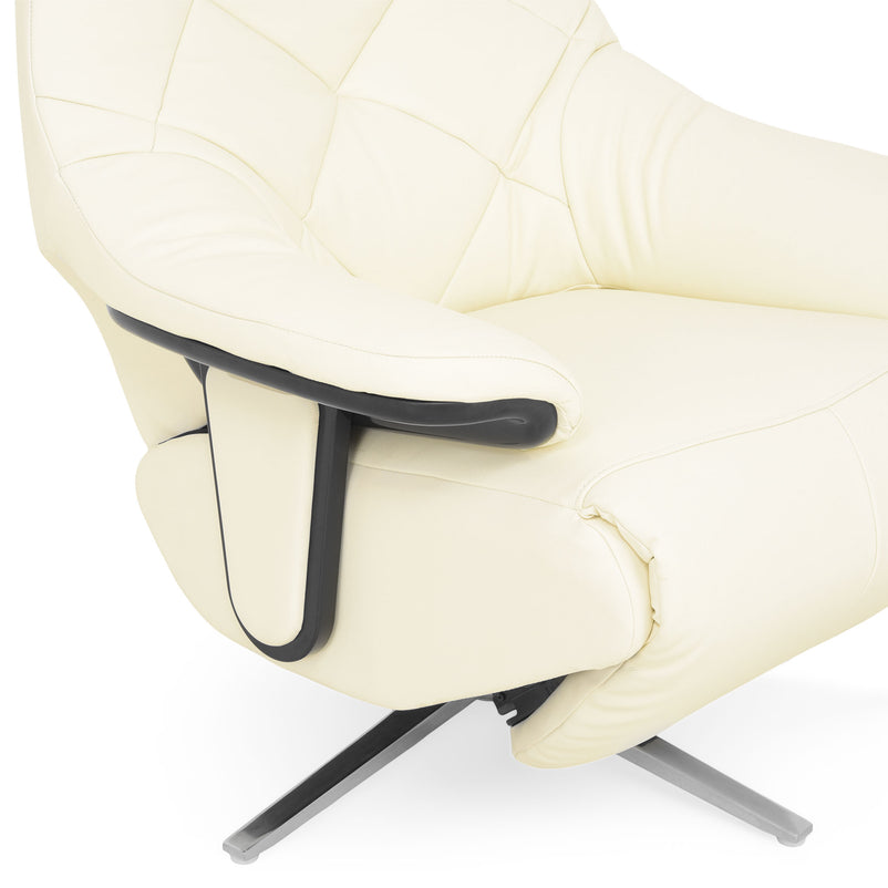 Fotoliu cu recliner electric, piele Stanley. Fotoliul cu recliner electric Stanley este o piesă ideală pentru cei pretențioși, acesta asigurându-vă șederi comode la voi acasă. Acesta este realizat din piele naturală și imitație de piele la exterior pe spate și brațe. Finisajul alb-cromat contribuie la aspectul său plăcut. Cu ajutorul reclinerului electric puteți să vă setați fotoliul în așa fel încât să vă simțiți bine acasă, după o zi încărcată la birou.