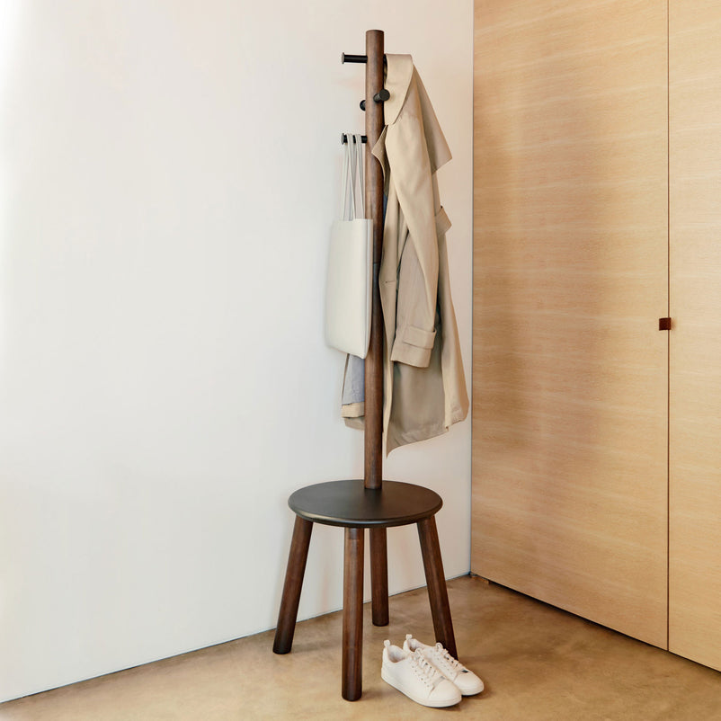 Cuier cu taburet Pillar. Cuierul Pillar este un produs util și estetic, care se va încadra cu succes în holuri. Cuierul este realizat din lemn și are un design minimalist, fiind ușor de asortat cu orice decor. Cuierul oferă locul perfect pentru haine, păstrând astfel încăperea organizată și ordonată. De asemenea, taburetul este perfect pentru a vă oferi un plus de confort atunci când aveți nevoie.