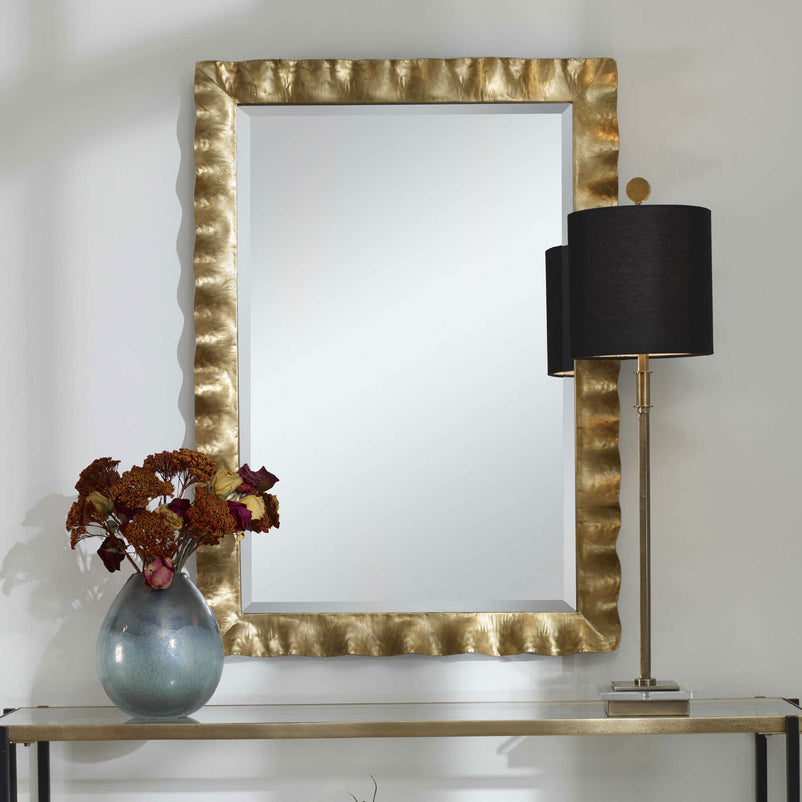 Oglindă Haya. Oglinda Haya este o piesă decorativă şi funcţională care va surprinde prin designul său şi va aduce o notă modernă casei voastre. Imaginea oglindită este încadrată de o ramă cu forme ondulate şi nuanţe metalice. Oglinda va decora cu bun gust spațiul vostru.