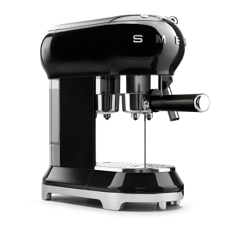 Espressor cu dispozitiv spumare Smeg. Dimineața perfectă începe alături de un espresso delicios. Espressorul din gama Smeg vă trezește apetitul de a bea o cafea bună, cu aroma veritabilă a unui espresso italian. Acesta permite utilizarea cafelei măcinate, preparându-vă rapid o cafea delicioasă. Din punct de vedere tehnic, espressoul are 3 filtre incluse, un sistem ajustabil pentru cappuccino, dar și o bază de anti-alunecare. Pregățiți-vă locul din bucătărie special destinat acestui espressor, iar diminețile voastre vor începe cu cele mai plăcute și gustoase arome de cafea filtrate prin espressorul Smeg.