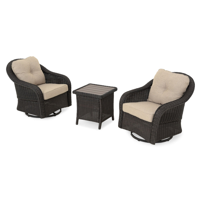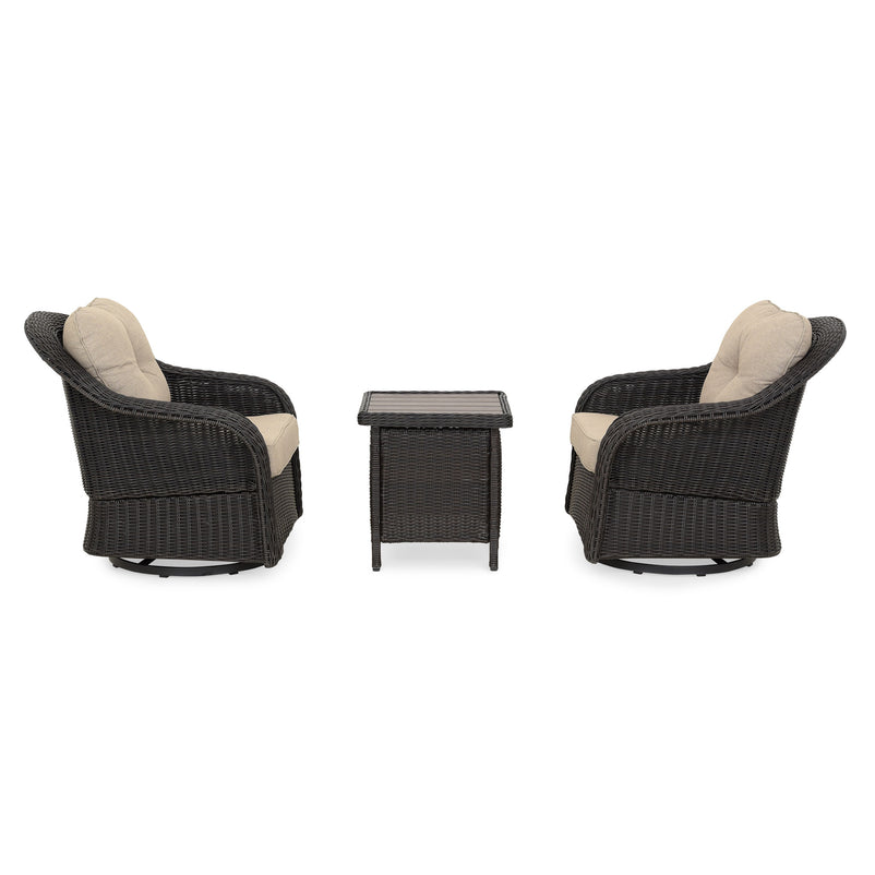 CANNET Set mobilier terasă/grădină, 2 fotolii rotative și măsuță colț