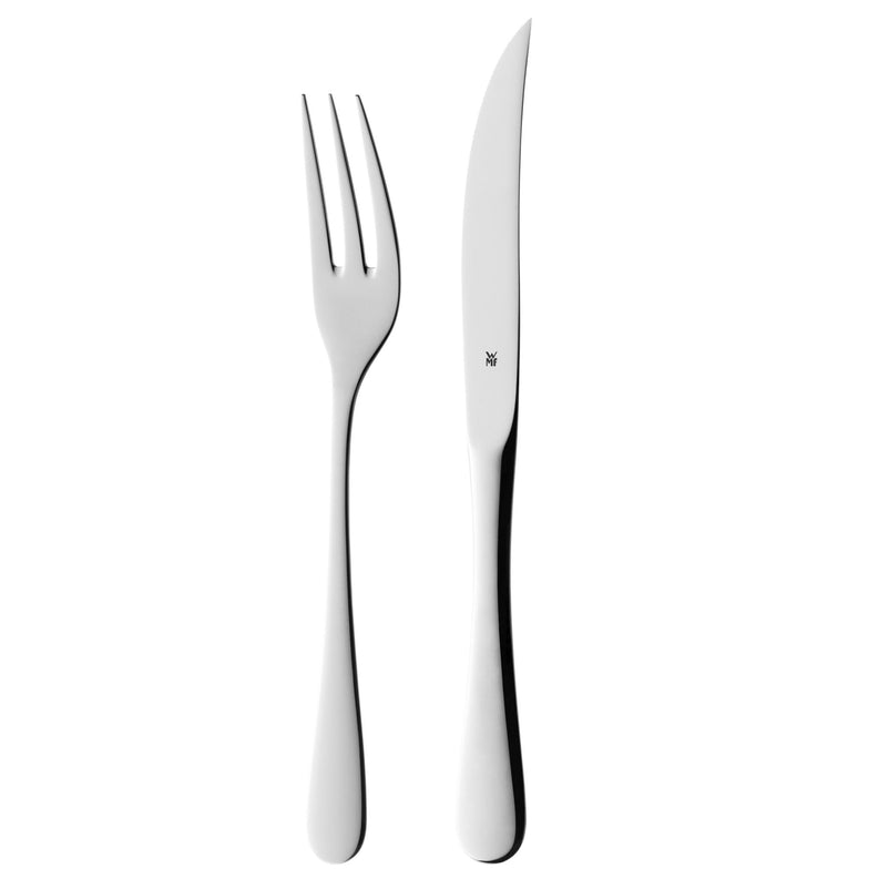 Set 6 cuțite cu furculițe Steak Profi. Setul Steak Profi vă pune la dispoziție tacâmurile perfecte pentru servirea fripturilor savuroase. Realizate din Cromargan și de culoare argintie, tacâmurile Steak Profi se remarcă prin eleganță și durabilitate. Setul conține cutie, șase cuțite și șase furculițe.