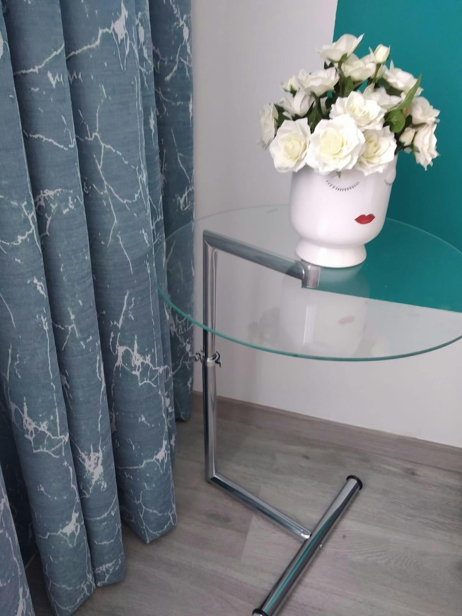 Măsuță reglabilă UP. Măsuța este perfectă pentru persoanele active, care vor eficiență, spațiu și piese de mobilier practice. Utilitatea este completată de latura estetică, subliniată prin geometria mesei și prin accentele moderne. Măsuța este potrivită pentru camera de zi sau camera de lucru.