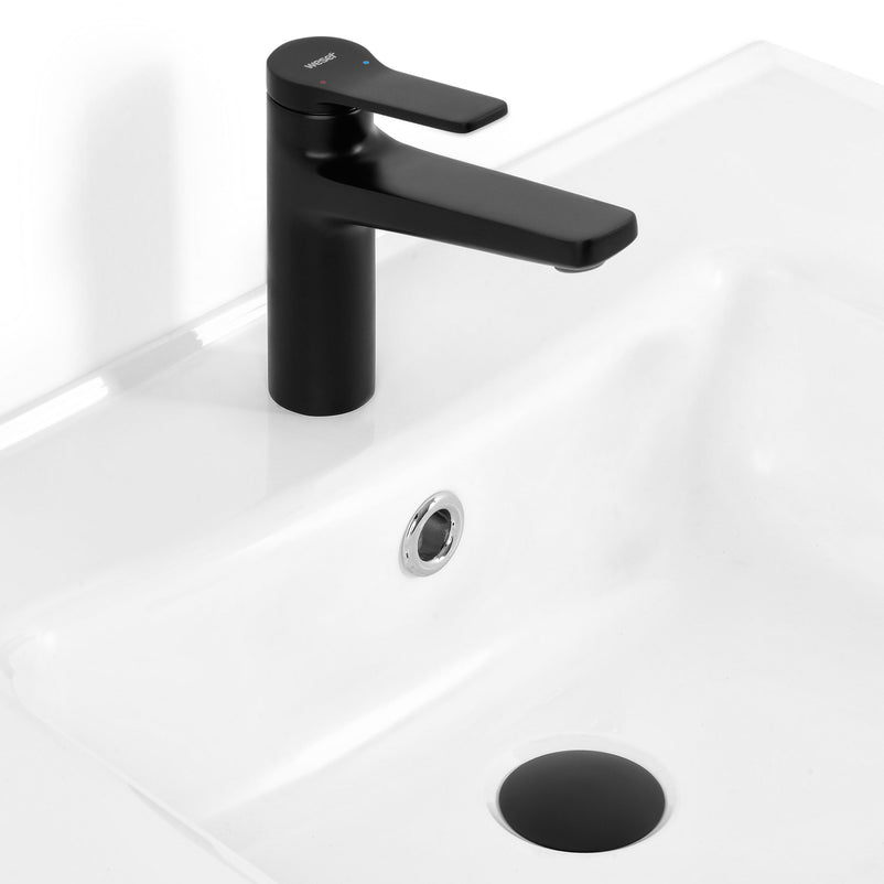 Baterie lavoar Sunrise. Practică și versatilă, bateria Sunrise este alegerea ideală pentru a completa perfect lavoarul din baia voastră. Realizată din alamă, de culoare negru mat și cu un design simplu reprezintă o piesă potrivită în decorarea unei băi moderne. Schimbarea temperaturii apei se face rotind tija acesteia spre stânga, respectiv dreapta.