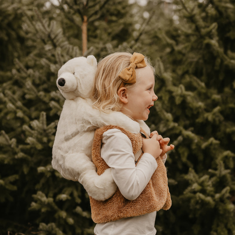 Rucsac copii Polar Bear. Realizat din super moale pluș, 100% poliester. Acest rucsac din material moale de pluș, cu un corp în formă de animal, este perfect pentru ca cei mici să se simtă îndrăgiți și ocrotiți. Se închide cu fermoar pentru a păstra comorile și a purta cu ei amintirile de zi cu zi, iar bretelele sunt ajustabile. Rucsacul este cosy și prietenos cu cei mici, iar excursiile și plimbările devin mai plăcute și mai distractive! Excelent cadou pentru orice copil.