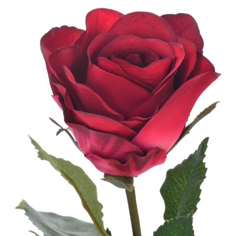 Floarea artificiala Rose adauga culoare si eleganta caminului tau. Realizata din poliester, cu tija din plastic cu insertie metalica, floarea artificiala Rose respecta toate caracteristicile unei plante naturale, cu exceptia parfumului. Mai mult, este rezistenta in timp si nu necesita ingrijire zilnica precum schimbarea apei si plasarea langa o sursa de lumina naturala.