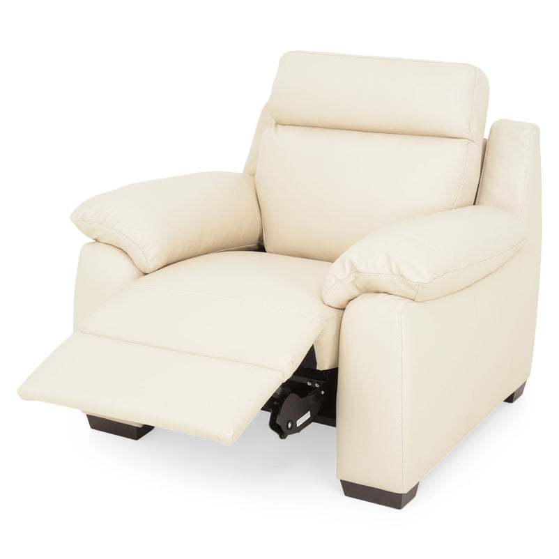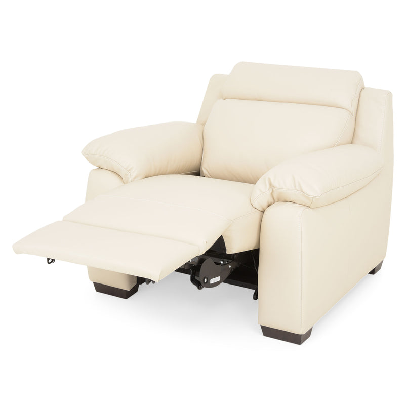 Fotoliu cu recliner electric, piele Torrens. Stați confortabil acasă pe un fotoliu recliner electric din gama Torrens, unde să vă relaxați sau să citiți o carte bună. Având la bază în totalitate piele și finisat plăcut în culoarea bej, fotoliul vă asigură de toată relaxarea pe care o visați după o zi solicitantă la birou. Reclinerul electric vine în întâmpinarea voastră pentru a vă desfăta în mijlocul camerei de acasă. Găsiți locul potrivit acasă acestui fotoliu și profitați de confortul pe care îl oferă.