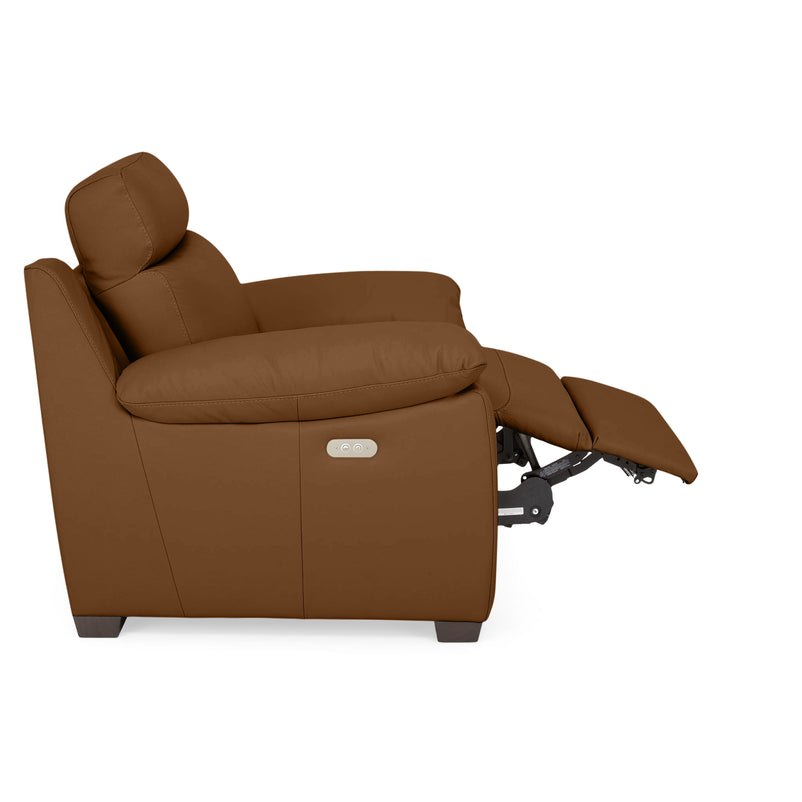 Fotoliu cu recliner electric, piele Torrens. Stați confortabil acasă pe un fotoliu recliner electric din gama Torrens, unde să vă relaxați sau să citiți o carte bună. Având la bază în totalitate piele și finisat plăcut în culoarea bej, fotoliul vă asigură de toată relaxarea pe care o visați după o zi solicitantă la birou. Reclinerul electric vine în întâmpinarea voastră pentru a vă desfăta în mijlocul camerei de acasă. Găsiți locul potrivit acasă acestui fotoliu și profitați de confortul pe care îl oferă.
