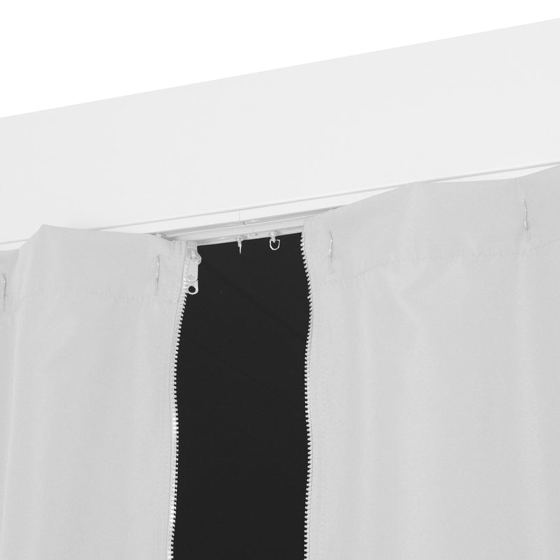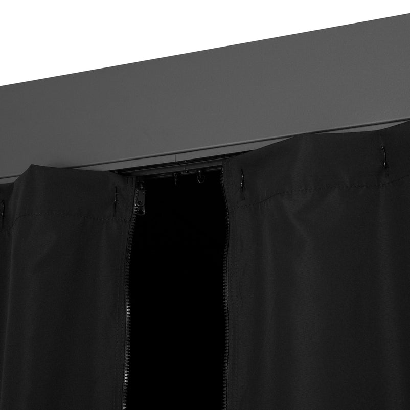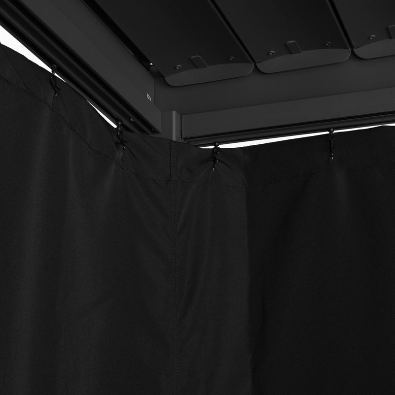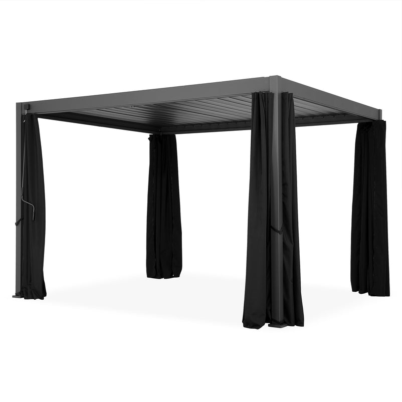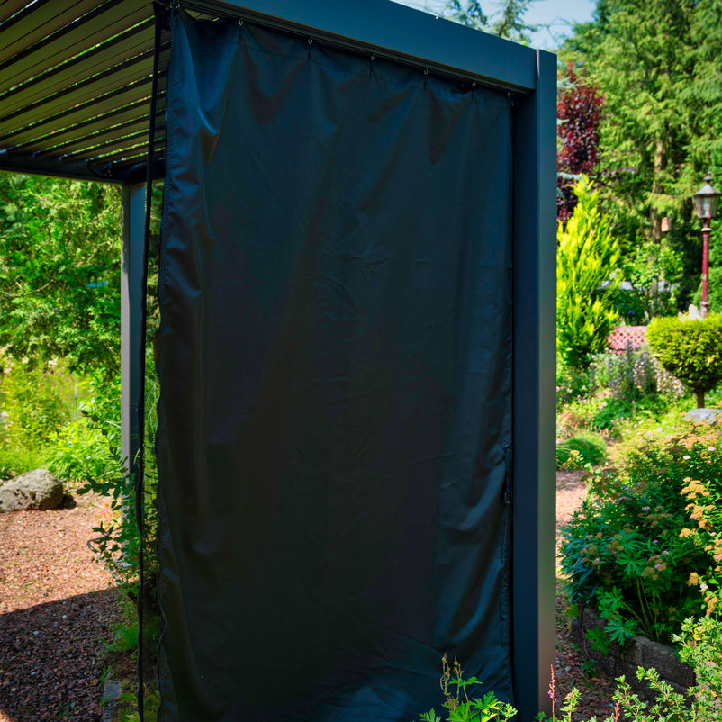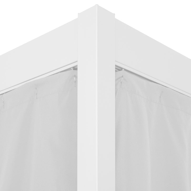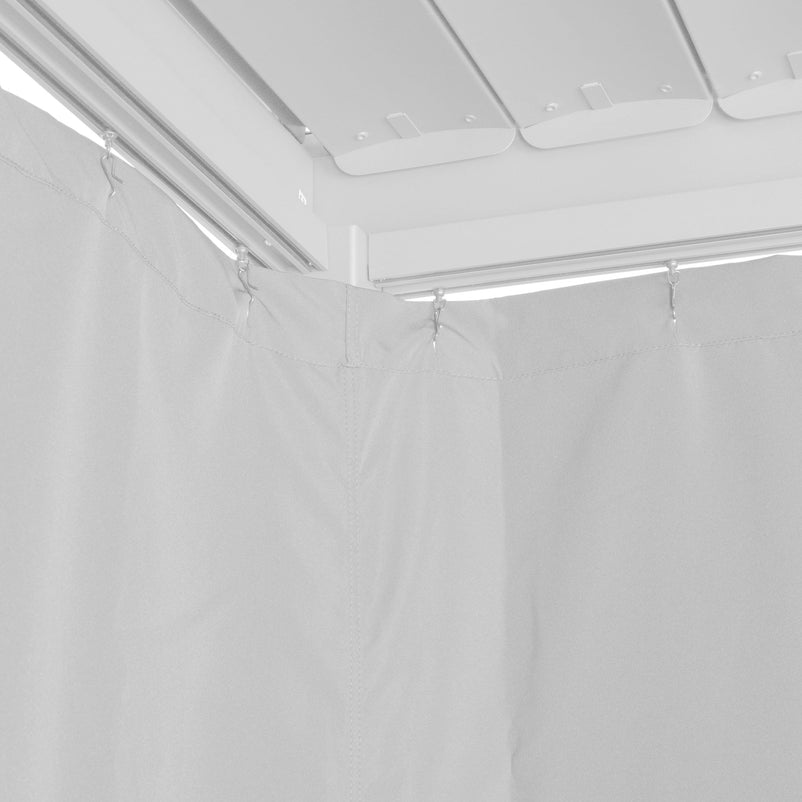 Set perdele pavilion Mirador Silver. Setul de perdele este realizat integral din poliester rezistent împotriva umezelii și a decolorării și vă acompaniază în zilele călduroase de vară, protejându-vă de insecte. De asemenea, se potrivesc pentru pergolele Mirador livrate în sezonul 2022.