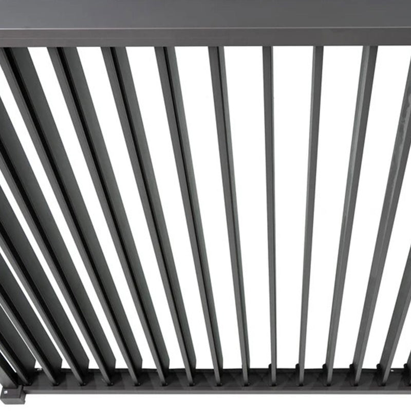 Lamelele orientabile asigură echilibrul ideal între lumina soarelui și umbră. Picioarele pătrate de 11 cm oferă stabilitate, iar cadrul din aluminiu garantează durabilitate și rezistență pe termen lung la intemperii și coroziune. Lamelele sunt realizate din oțel galvanizat.