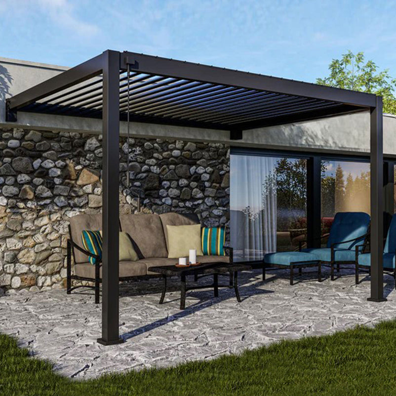 Lamelele orientabile asigură echilibrul ideal între lumina soarelui și umbră. Picioarele pătrate de 11 cm oferă stabilitate, iar cadrul din aluminiu garantează durabilitate și rezistență pe termen lung la intemperii și coroziune. Lamelele sunt realizate din oțel galvanizat.