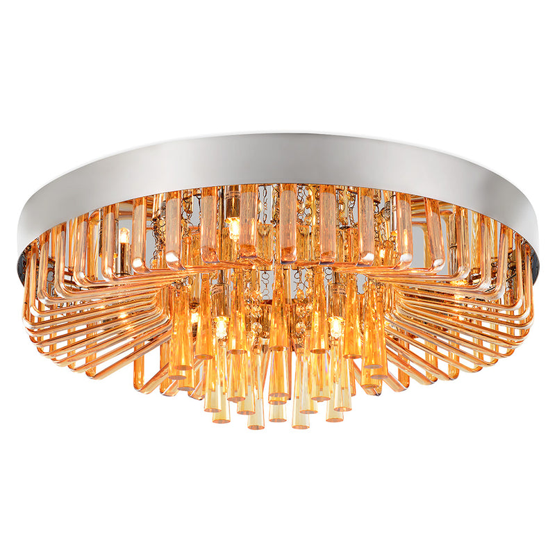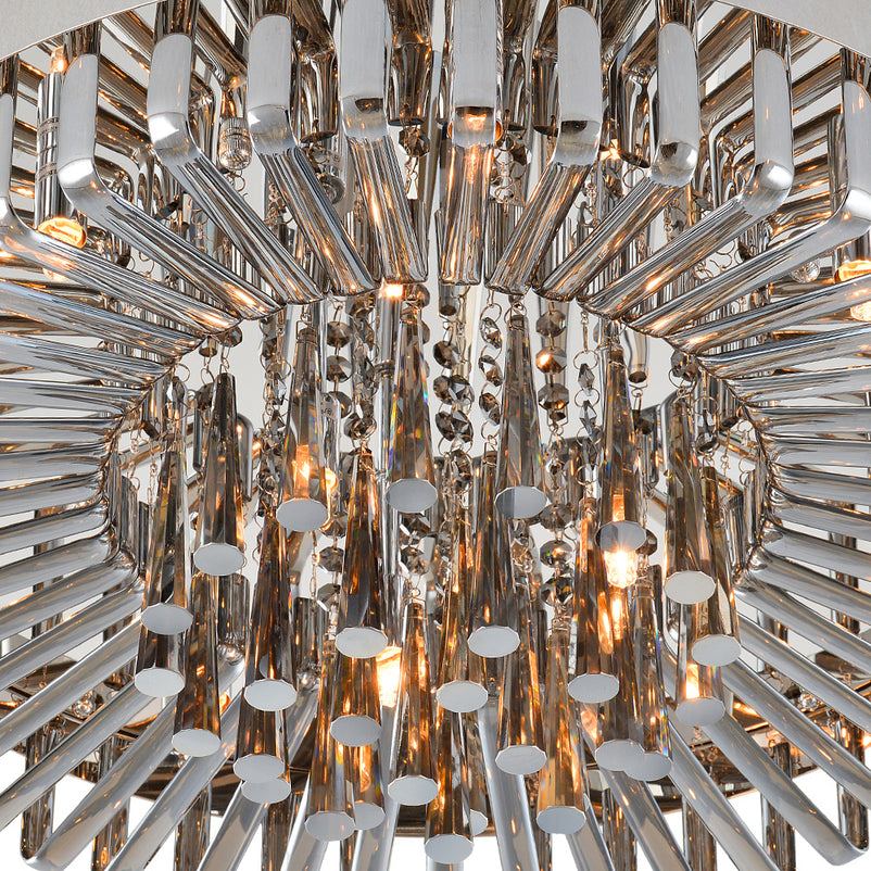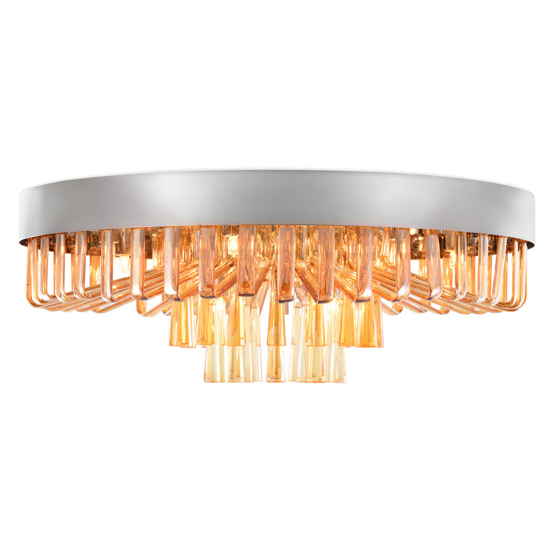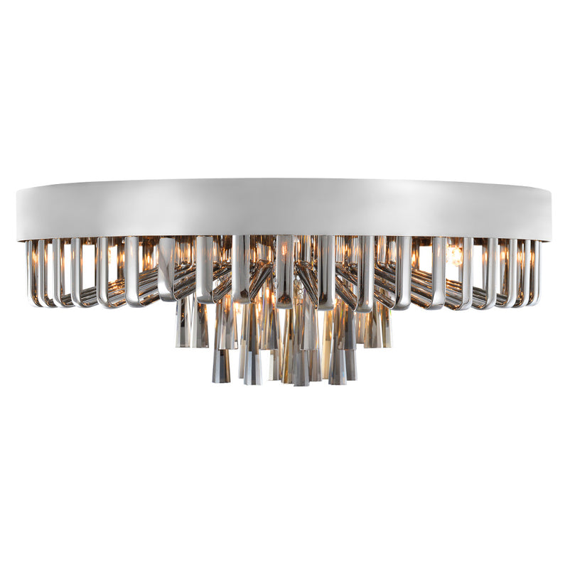 Plafoniera Hewitt este un spectacol vizual plin de rafinament. Structura din metal sustine o multitudine de cristale si forme de sticla de culoare alba, ce va incununeaza camera cu stil. Plafoniera Hewitt reprezinta combinatia perfecta dintre functionalitate si bun gust. Aceasta va lumineaza uniform spatiul, in timp ce il accesorizeaza cu finete.